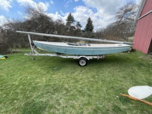 Comes with trailer, two sets of sails (1 only used on race day) and one spinnaker.  Please contact soon, I would like to either sell this boat or donate it in the next week.  I have more photos but the site isn’t letting me upload more.