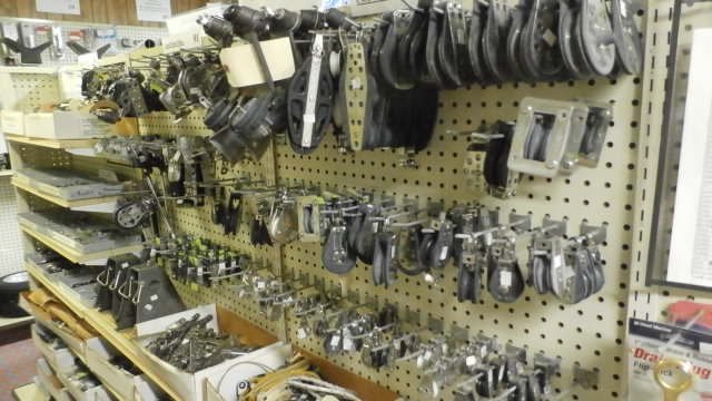 We also have line by the foot, wires made to your specifications, centerboard cables, Harken blocks and cleats, shackles, clevis pins, cotter rings, etc.
